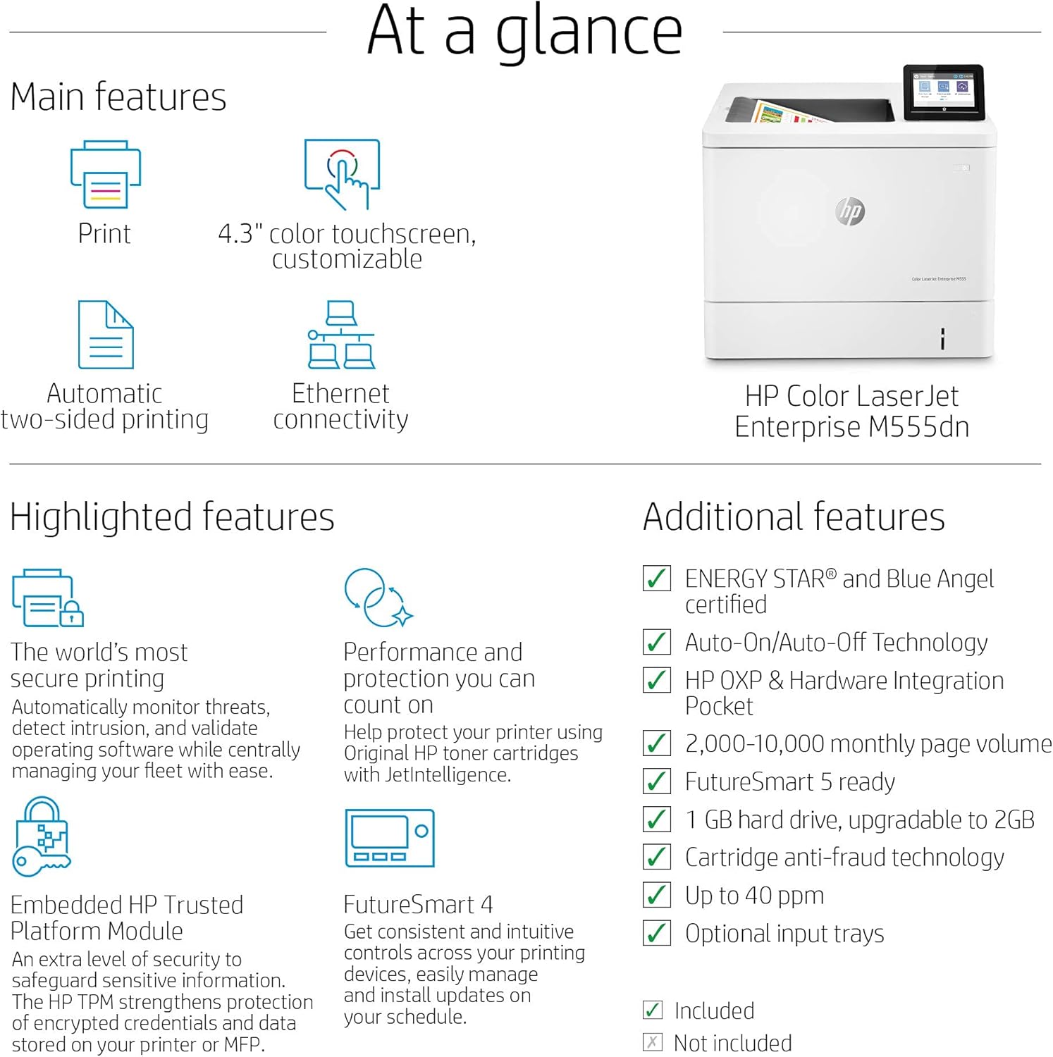 HP Color LaserJet Enterprise M555dn یکی از مدلهای چاپگر لیزری رنگی با سطح کاری سازمانی است که برای کارگروهها و دفاتر متوسط تا بزرگ طراحی شده است. این دستگاه بر مبنای راهکارهای امنیتی قوی، سرعت مناسب، قابلیت دوطرفهچاپ خودکار و امکانات مدیریتی پیشرفته، گزینهای جذاب برای محیطهای اداری حرفهای است.