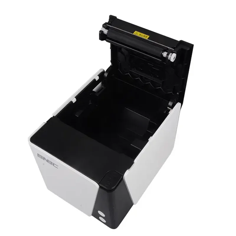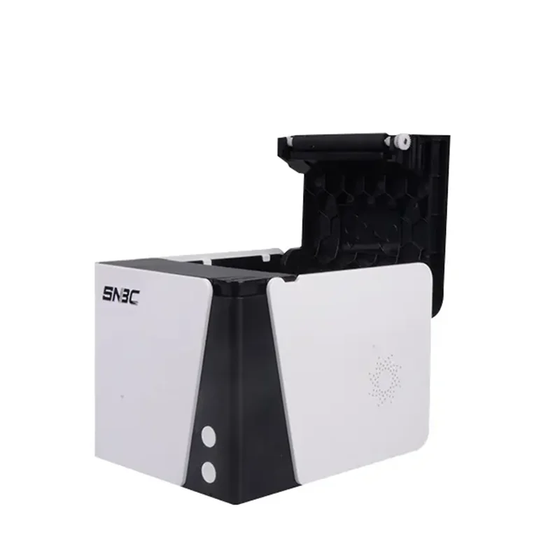 SNBC BTP-N80 با طراحی جمعوجور و شیک خود (ابعاد تقریبی 160.5 × 126 × 116.5 میلیمتر) برای فضاهای محدود مناسب است. بدنه سیاهوسفید با لوگوی فلزی نهتنها ظاهر حرفهای دارد، بلکه از مواد مقاوم ساخته شده که دوام آن را در محیطهای پرتردد تضمین میکند. وزن سبک (حدود 1.5 کیلوگرم بدون کابل) امکان جابهجایی آسان را فراهم میکند، اما پایههای ضدلغزش آن ثبات خوبی در هنگام استفاده ارائه میدهد. طراحی مدولار به شما اجازه میدهد آن را بهعنوان پرینتر پنلی یا کیوسک بدون نیاز به پوسته اضافی نصب کنید، که برای سفارشیسازی انعطافپذیری بالایی دارد.